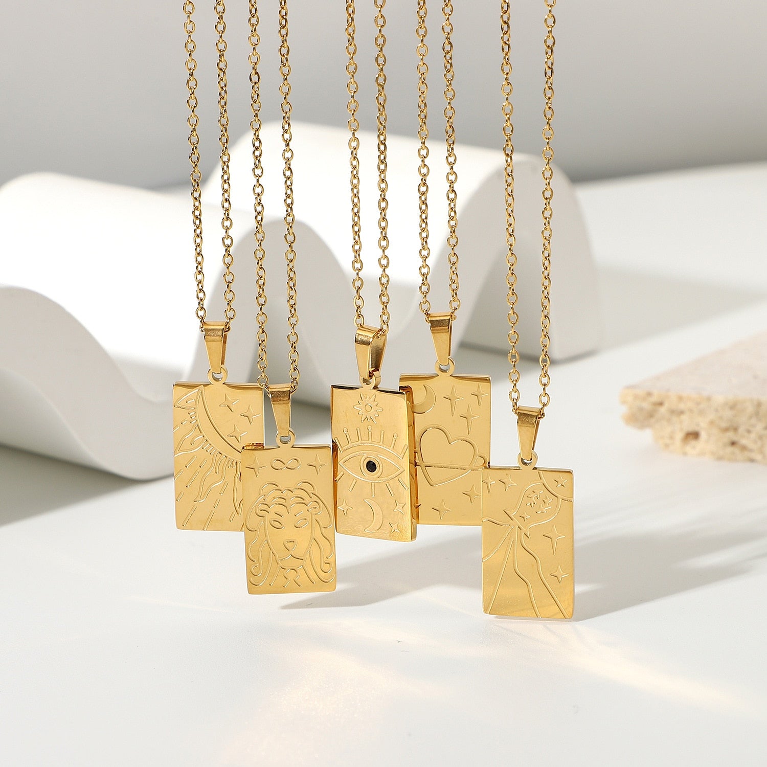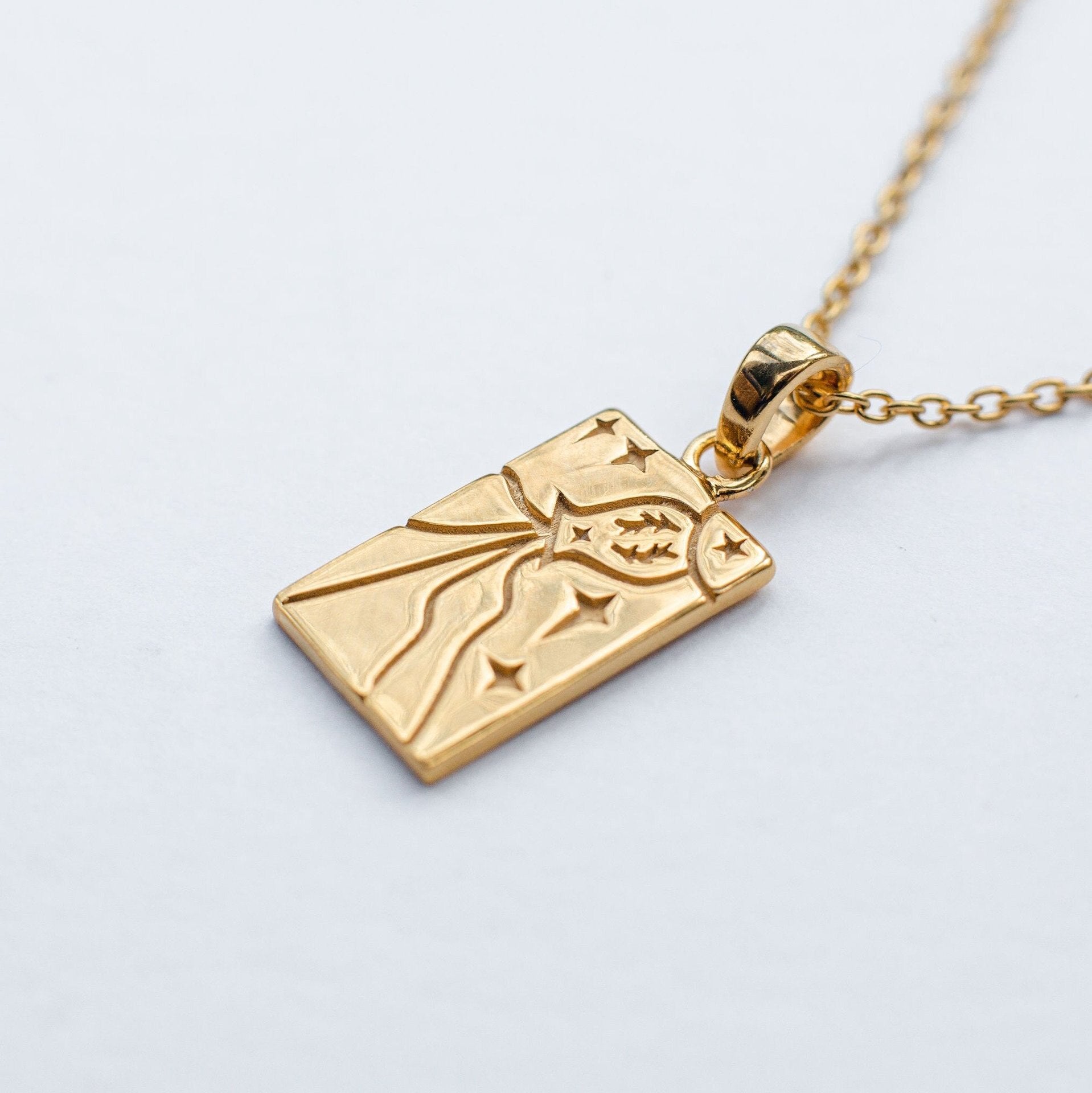 14k gold plated necklace with tarot card Amulet pendant - Waterproof, sweat proof and life proof.